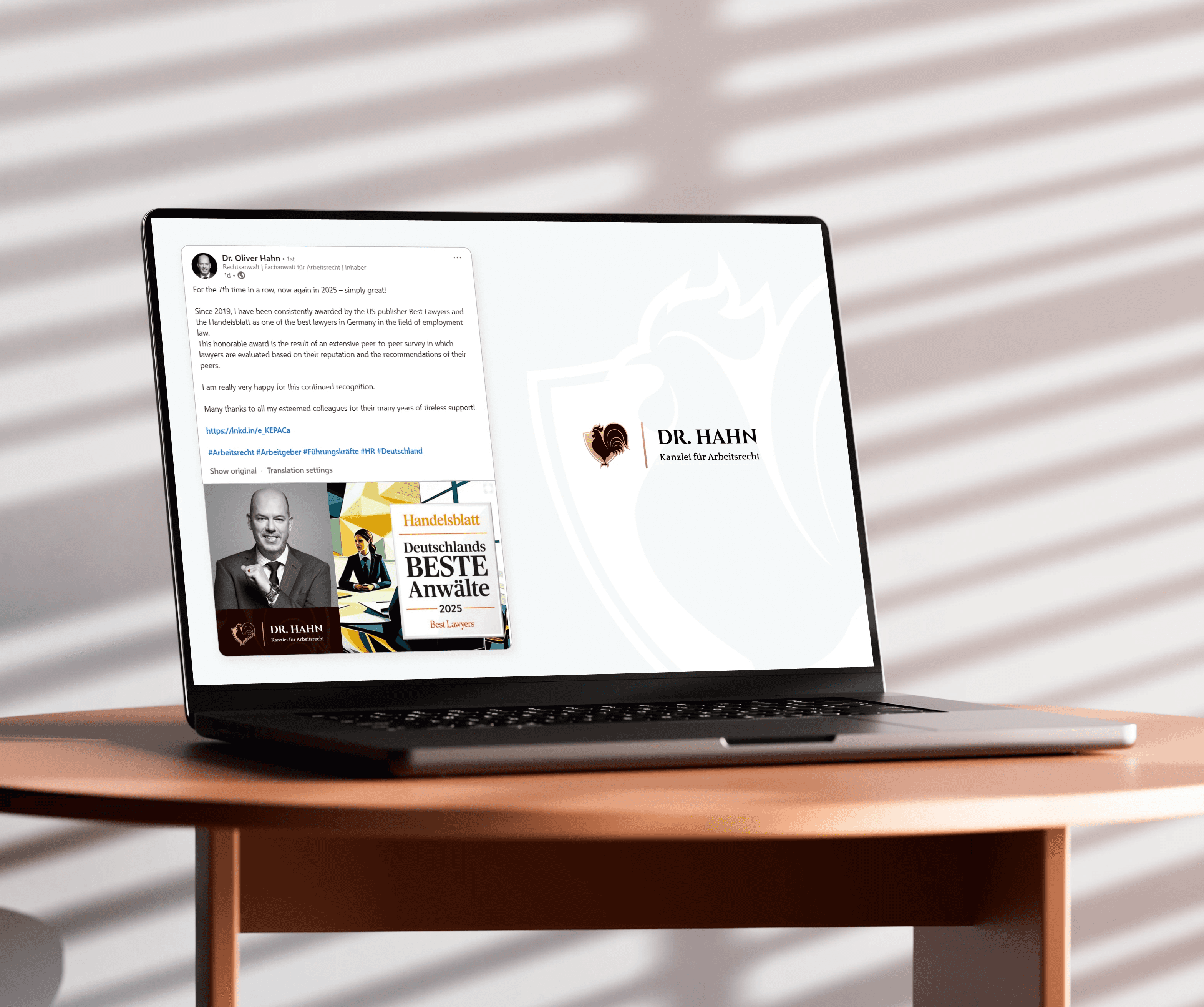 The identity supported Dr. Hahn’s continued positioning as a leading legal authority, including recognition as “Bester Anwalt Deutschlands”(Best Lawyer in Germany) for 6 consecutive years.