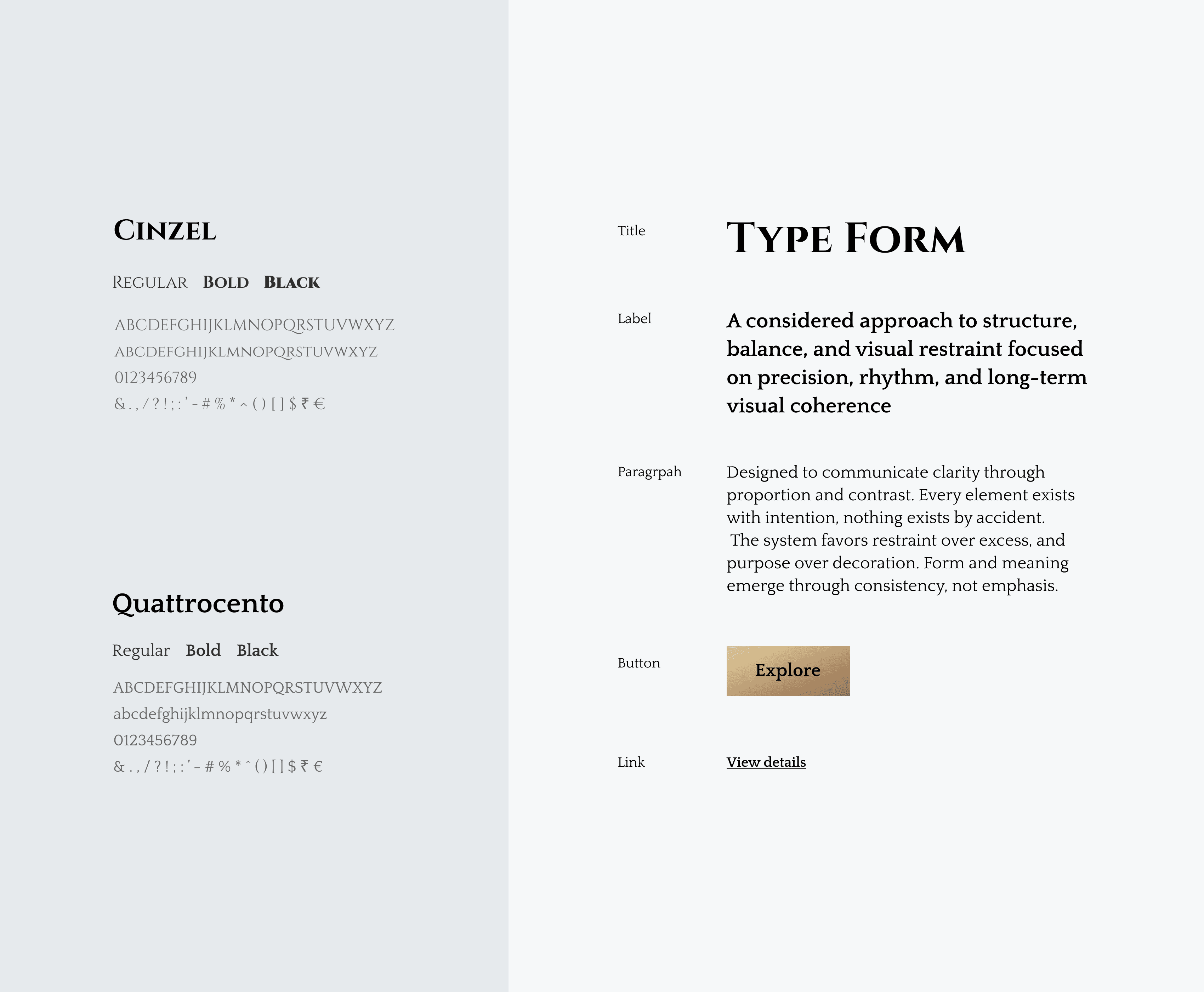 In a market dominated by predictable legal blues, the identity required authority without imitation. A restrained Gold–charcoal palette and monumental serif typography establish permanence, not trend.