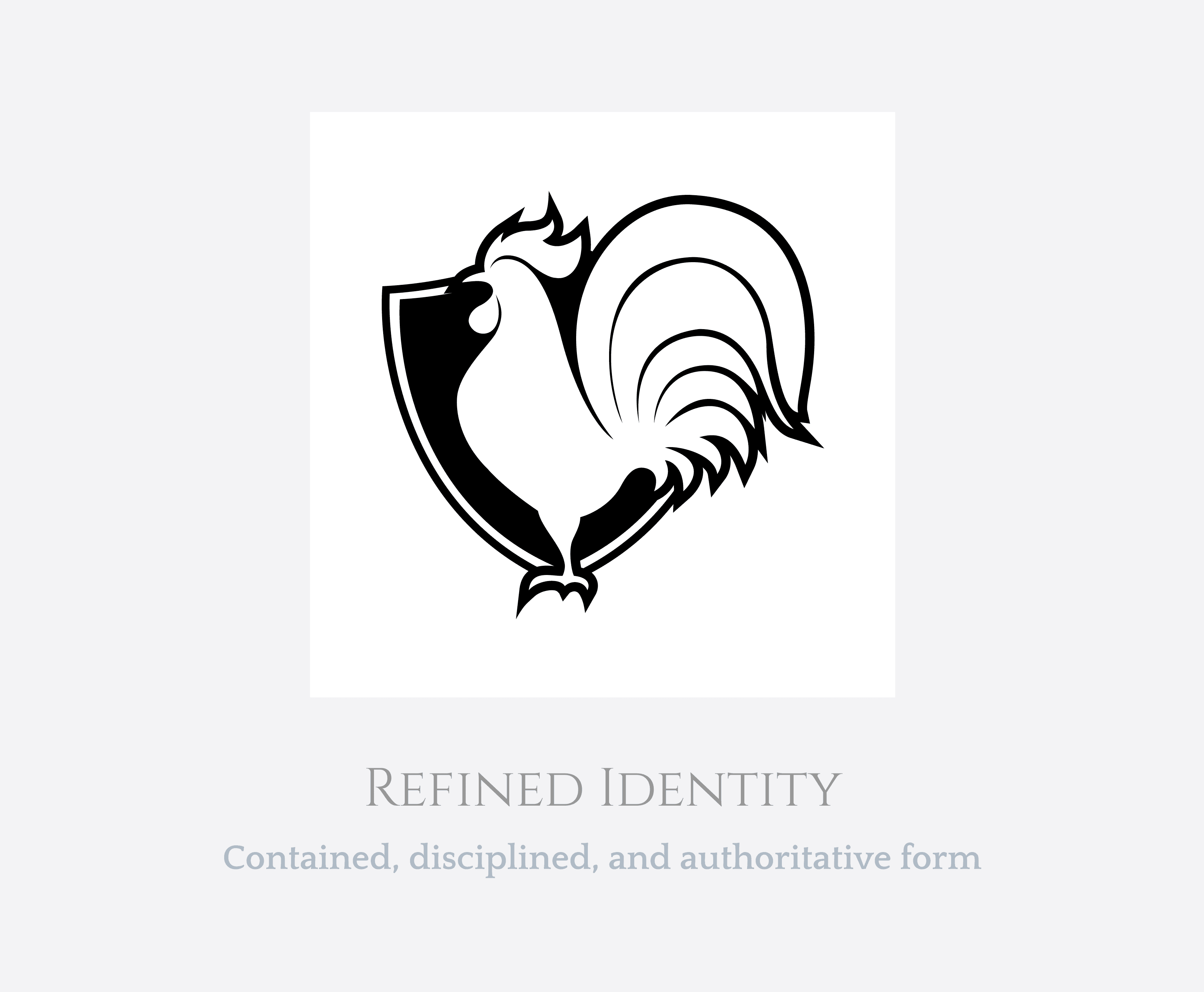 The challenge was interpretive, not expressive. I restructured the rooster into a heraldic form—retaining recognizability while embedding legal symbolism through balance, posture, and containment.
